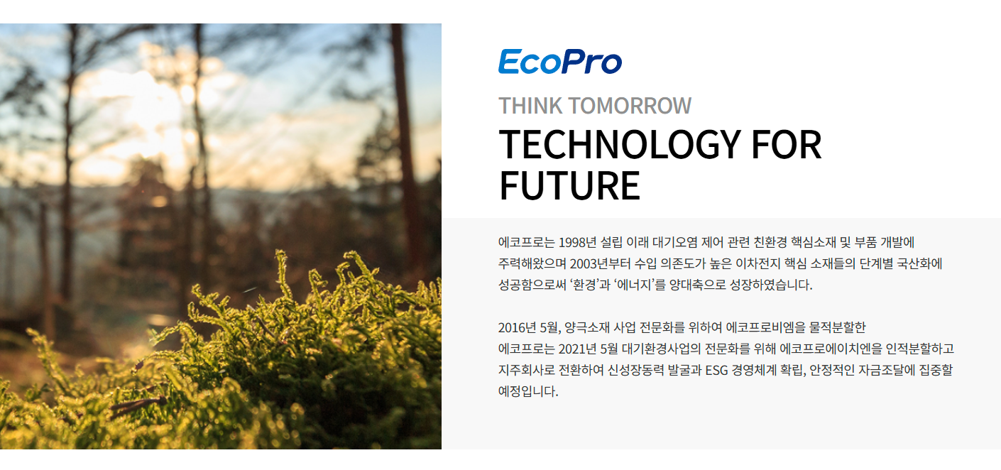 에코프로비엠(Ecopro BM)은 대한민국의 대표적인 2차전지 양극재 제조 기업으로, 에코프로의 자회사입니다. 2000년에 설립된 에코프로는 환경 관련 기술을 기반으로 성장했으며, 2016년 에코프로비엠을 출범시키며 2차전지 소재 사업에 본격적으로 진출했습니다.